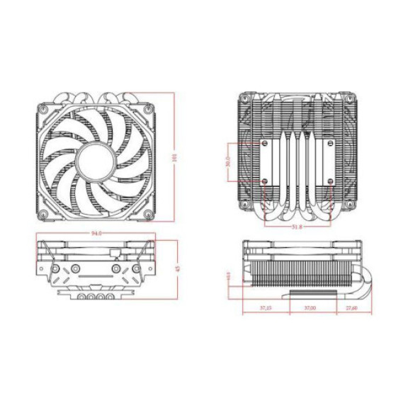 45mm Height Low Profile CPU Cooler 4 Heatpipes CPU Air Cooler with 15mm Thickness Slim Fan